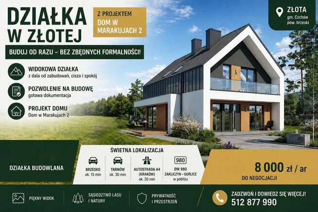2Widokowa działka 34,28 ar z pozwoleniem na budowę w miejscowości Złota, gm. Czchów, powiat brzeski woj. ...